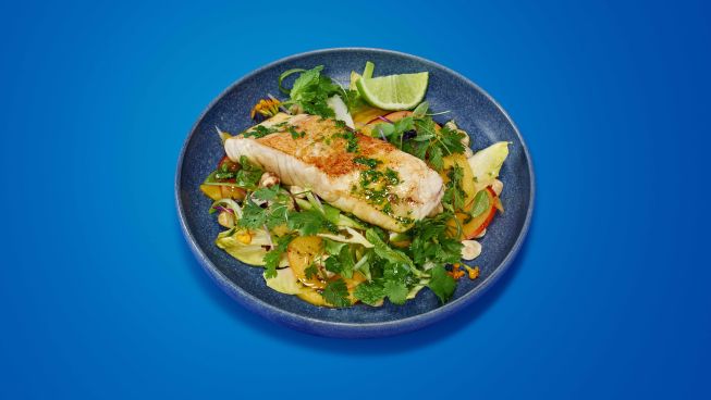Arrange salad ingredients on a plate. Top with cooked fillets and drizzle with the salsa verde. Serve with lime or lemon wedges
