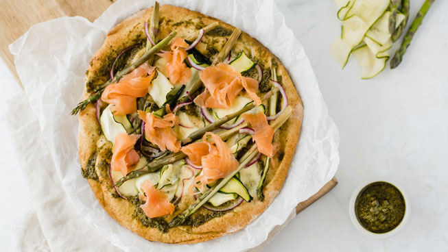 Pesto Pita Pizza with Salt Reduced Smoked Salmon