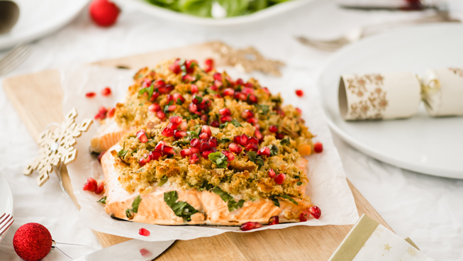 Combine remaining parsley with pomegranate seeds. Remove the salmon from the oven and top with pomegranate mixture.