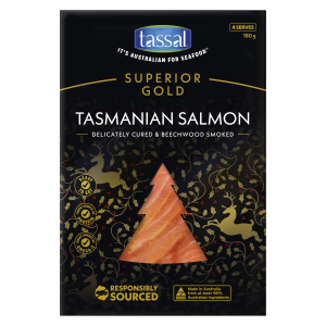 TASSAL Superior Gold 180g Tasmanian Smoked Salmon – XMAS FOP